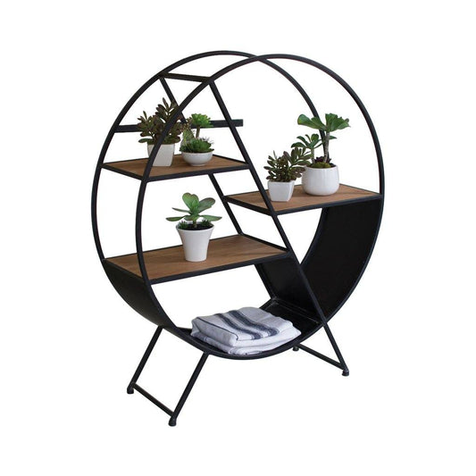 Open Bookcase With 4 Wooden Shelves & Iron Frame