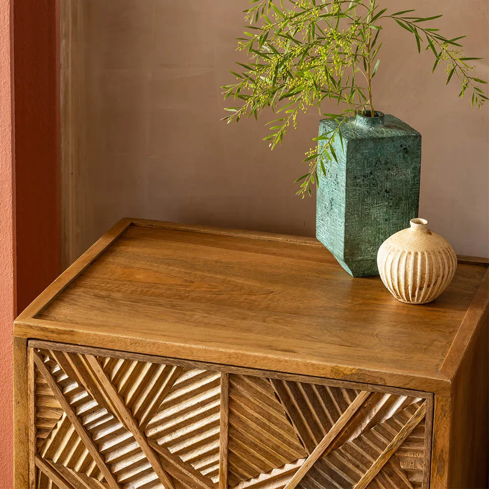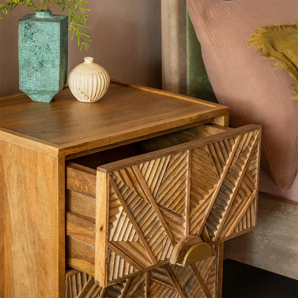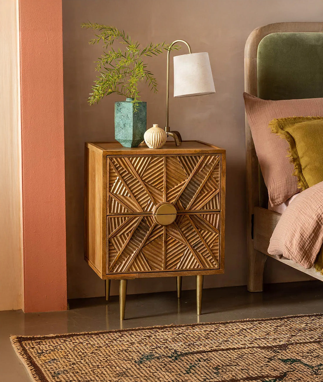 Elevate your bedroom with the Arlo Bed Side, a stunning bedside cabinet crafted from solid natural mango wood. This piece seamlessly blends rustic warmth with contemporary elegance, featuring brass-plated handles and legs that add a touch of luxury to any space. The organic grain of the mango wood brings character and authenticity, while the polished brass accents create a sophisticated focal point. Perfect for storing essentials while making a design statement, the Arlo combines functionality with timeless style that transforms your bedroom into a sanctuary of refined comfort.
