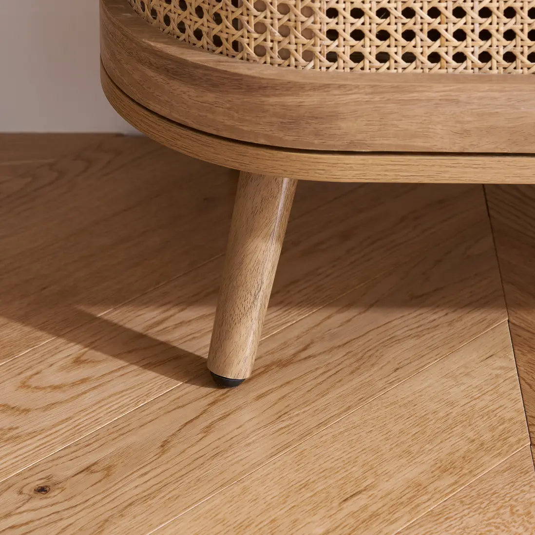 The Charlie Sideboard marries contemporary design with artisanal craftsmanship. Softened curves and delicate bevels create visual interest while maintaining understated elegance. Hand-woven rattan detailing on the front showcases intricate patterns that balance boldness with restraint. Warm, neutral tones complement any décor scheme, making this piece a versatile addition to modern and traditional spaces alike. Smooth wooden surfaces reward the touch, inviting you to experience quality at every angle. Perfect for discerning homeowners seeking furniture that whispers sophistication rather than shouts it—a timeless investment that seamlessly bridges classic charm and contemporary style.
