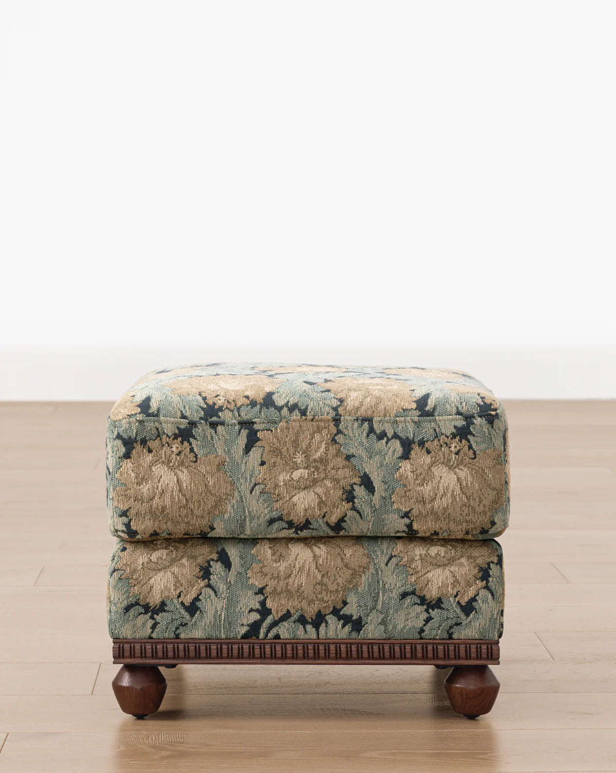 Divine Ottoman brings sophisticated comfort to your home with its thoughtfully designed silhouette. Wrapped in a versatile neutral fabric, this piece features an intricately carved wood base and gracefully rounded feet that elevate its aesthetic appeal. Whether you need additional seating, a comfortable footrest, or a stylish accent piece, this ottoman seamlessly adapts to your lifestyle. Its refined craftsmanship and timeless design make it an investment in both comfort and enduring elegance for any room.