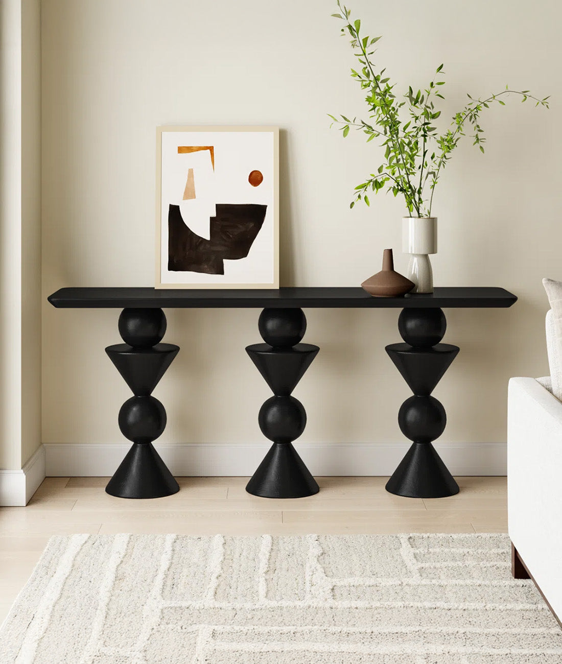 The Poppy Console Table brings bold geometric design to any living space, transforming your entryway, hallway, or living room into a showcase of modern style. Its striking angular lines and contemporary silhouette create visual interest while providing practical surface space for décor, keys, or personal items. Perfect for those who appreciate statement furniture that balances form with function, this console table elevates your interior with architectural appeal and sophisticated charm.