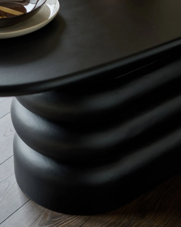 The Tisbury Dining Table commands attention with its bold sculptural design, featuring a distinctive fluted pedestal base that elevates any dining space. Crafted from rich black mango wood, this 8-seater table combines striking aesthetics with practical functionality, making it the perfect centerpiece for gatherings. The elegant finish and architectural silhouette create an instant focal point while providing ample seating for family dinners and entertaining guests. A statement piece that transforms your dining room into a sophisticated showcase.